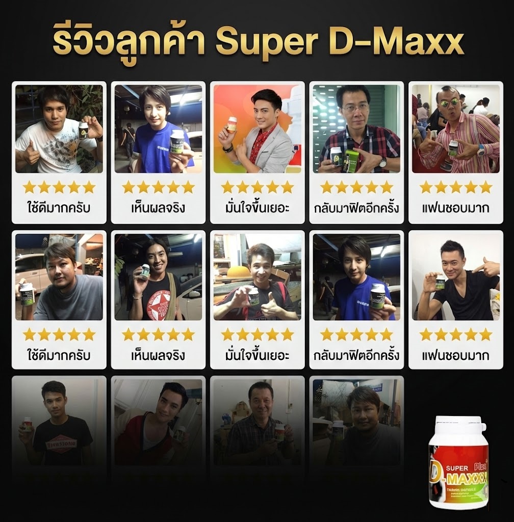 ผู้ใช้จำนวนมากที่เลือก Super D-Maxx (ซุปเปอร์ดีแม็ก) ต่างให้เสียงตอบรับในทิศทางเดียวกันว่า รู้สึกถึงความเปลี่ยนแปลงของร่างกายและพลังชีวิตที่ดีขึ้น เมื่อรับประทานอย่างต่อเนื่อง