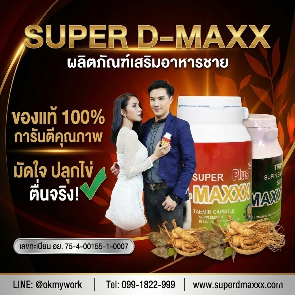 Super D-Maxx จึงเป็นตัวเลือกที่เหมาะสำหรับผู้ชายที่ต้องการดูแลสุขภาพ พลังชีวิต และความมั่นใจในทุกวันอย่างสมดุลและปลอดภัย